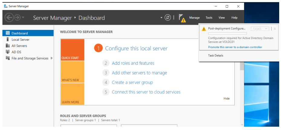 Promoto this server to a domain controller‘a basılarak domain kurulum işlemine başlanır.