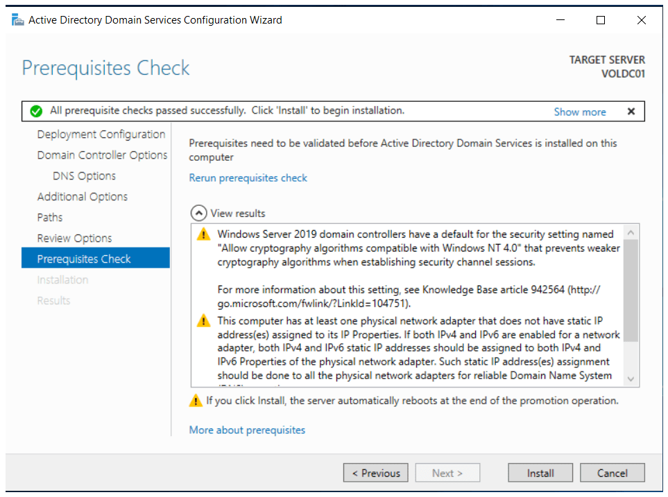 Ön gereksinim kontrolü yapıldıktan sonra herhangi bir sorun ile karşılaşılamıştır. Install komutu ile kuruluma devam edilir.
