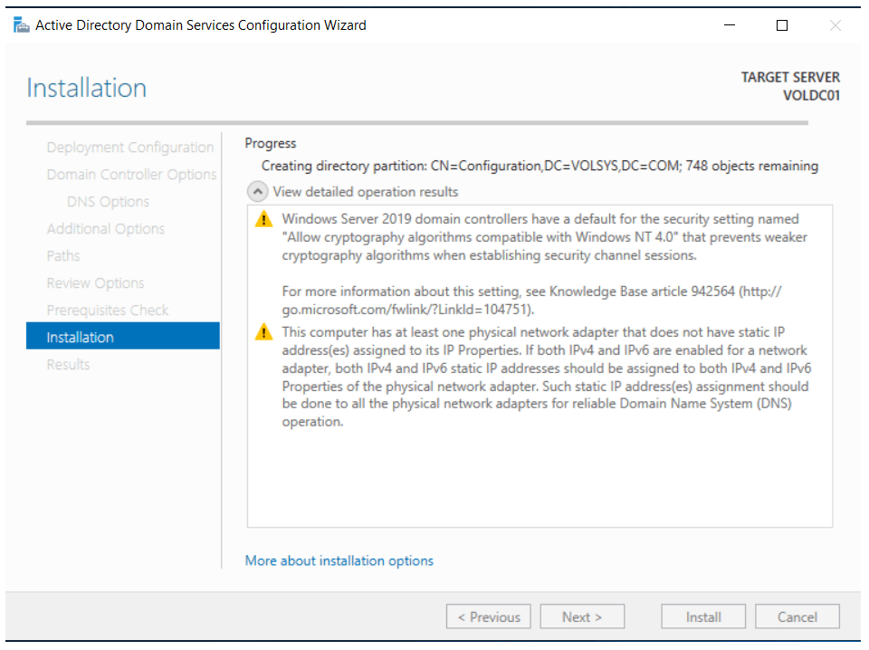 Konfigürasyon, review edilerek Next buton’u ile kuruluma devam edilir.
