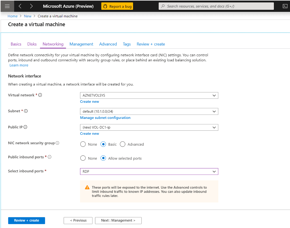 Public inbound port‘dan daha önce RDP’yi seçmiştim, buradan değiştirebilirim.