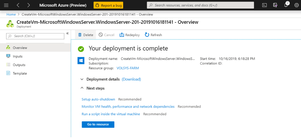 Kurulum tamamlandıktan sonra “Go To Resource” ile devam ediyoruz.