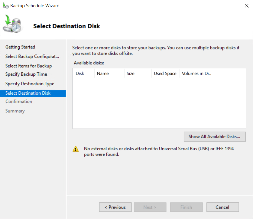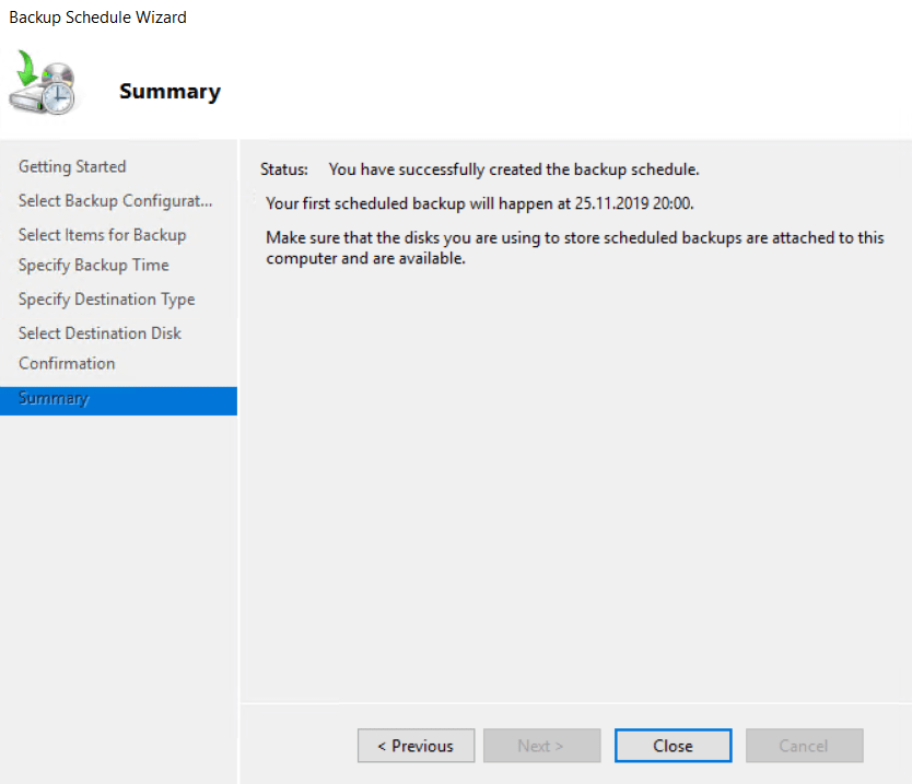 Feature kurulumu tamamlandıktan sonra backup schedule yapılacak disk kontrol edilir. (dedicated disk önerilmektedir.) Backup Disk’i (B Drive) kullanılır.