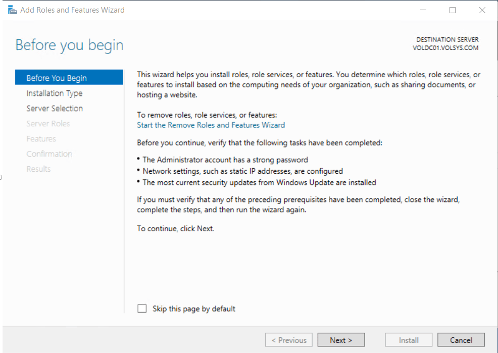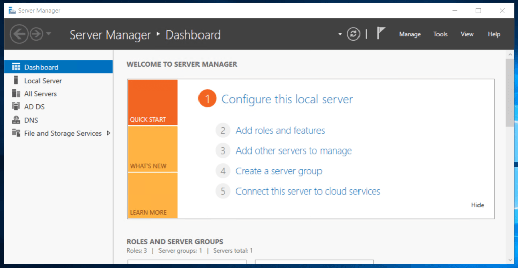 Windows Server Manager’dan – Add roles and Features seçilir.