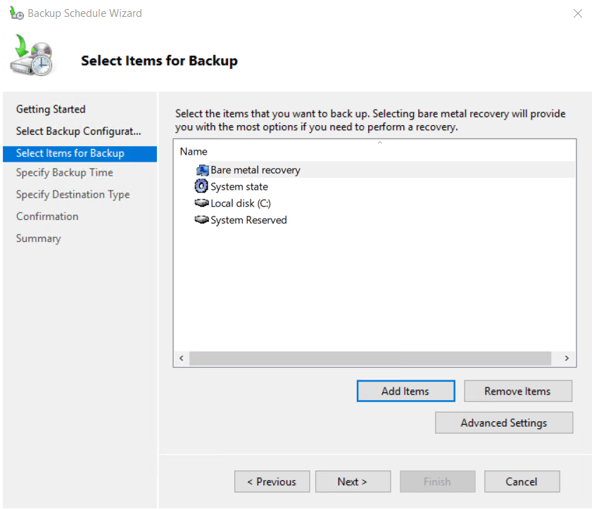 Bare Metal Recovery Seçilir