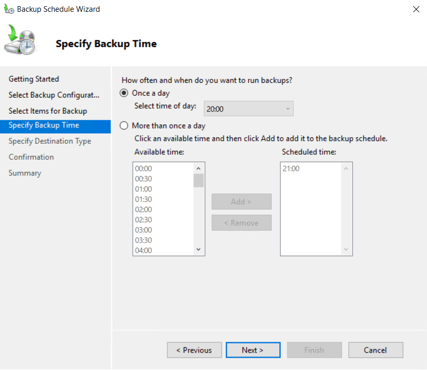 Hergün saat 20:00’de backup alıncak şekilde Schedule edilir.