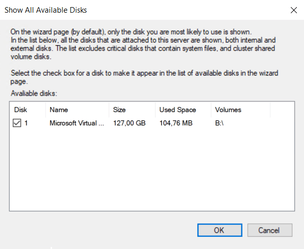 Show All Available Disk seçilir.