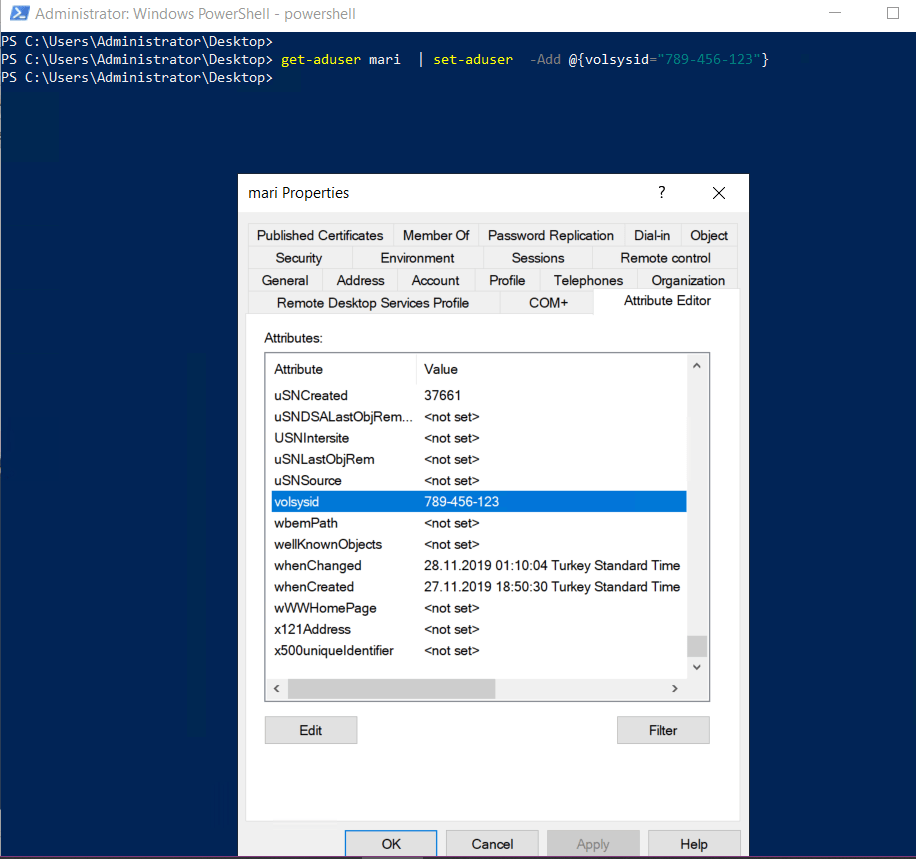 get-aduser mari | set-aduser -Add @{volsysid=”789-456-123″}