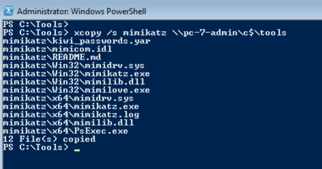 Xcopy /s mimikatz \\PC-7-admin\c$\temp