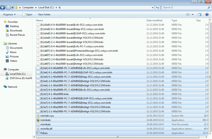 Kerberos::PTT c:\t1 ( Ticketların olduğu klasör gösterilir)