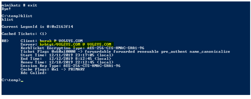 Mimikatz’dan çıkılır ve klist komutu ile krbtgt control edilir.