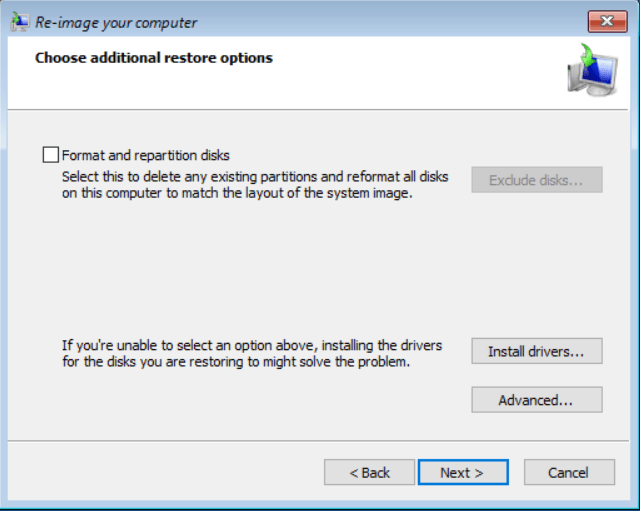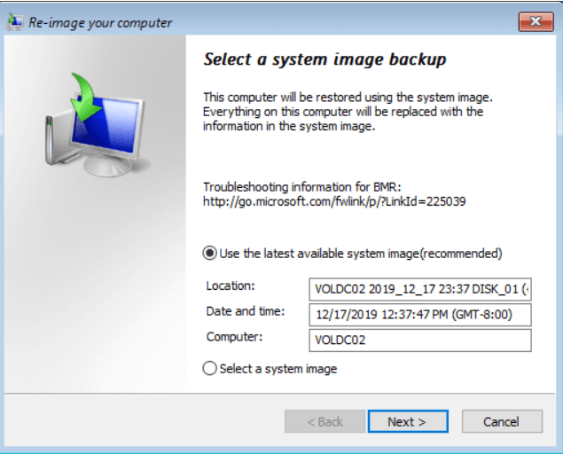 System image recovery seçilir.