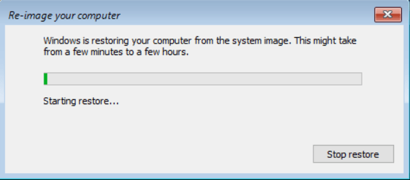 Restart now ile restore işlemi tamamlanır ve sürücü restart edilir.