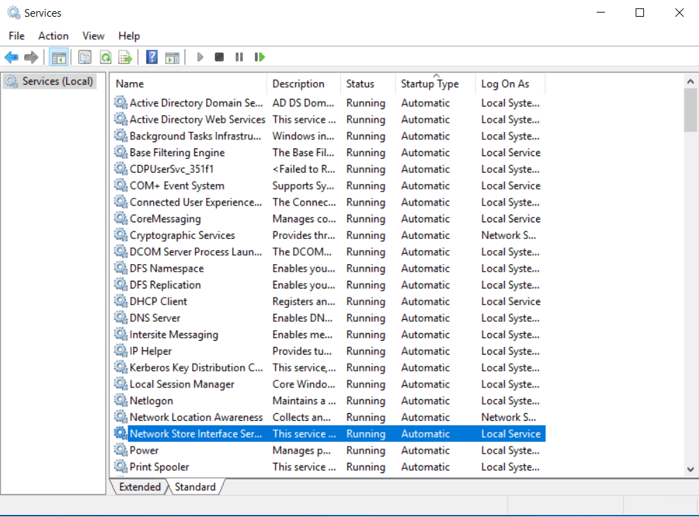 Active Directory servis’leri veNetwork Store Interface Services’in çalıştığı kontrol edilir.