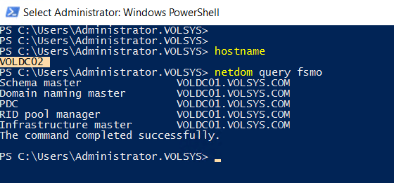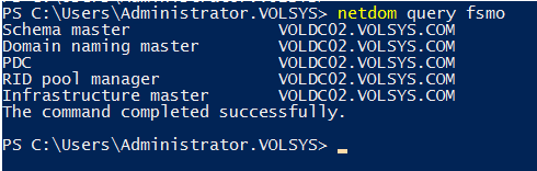 tekrar netdom query fsmo komutu ile rollerin taşındığı kontrol edilir.