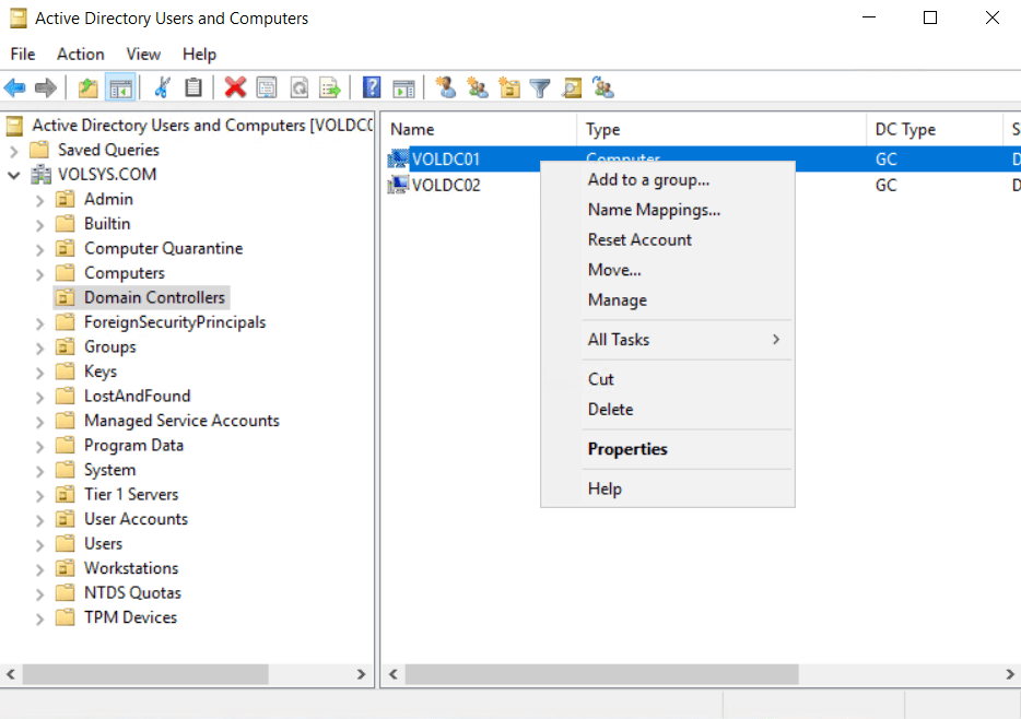 AD Users and Computers’da sadece aktif olarak DC’nin kaldığı kontol edilir.