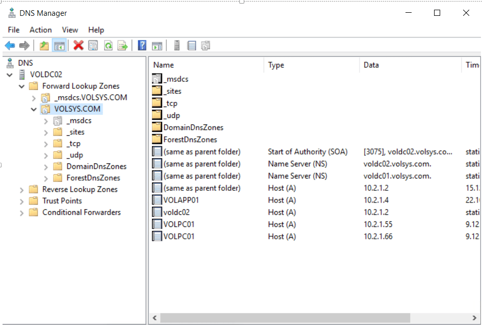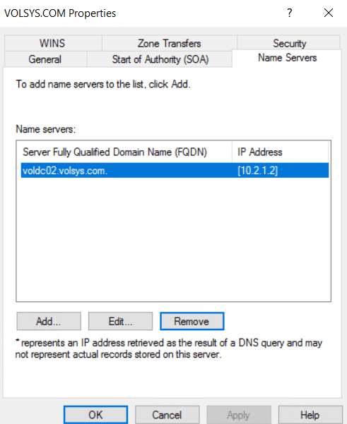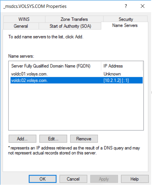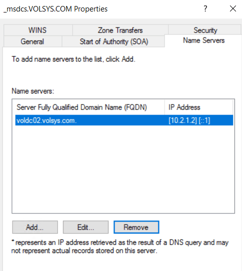 DNS Forward Lookup Zone – Name Servers’dan aktif olmayan DC’ler kaldırılır. (_msdcs.VOLSYS.COM )