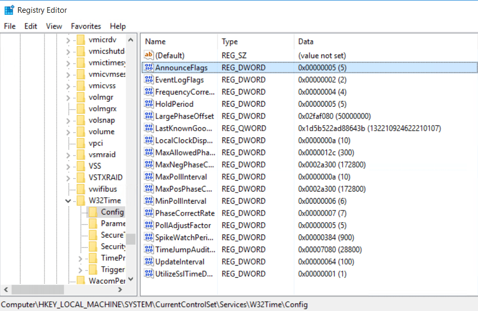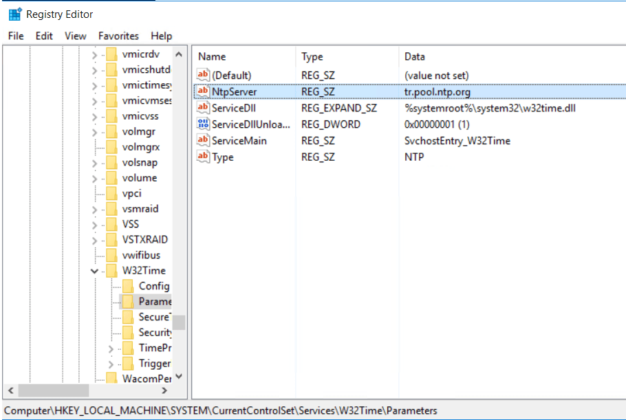 Hkey_LOCAL_MAchine\CurrentControlSet\Services\W32Time\Parameters seçilir.