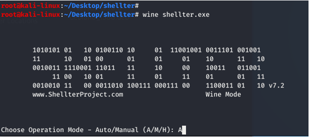 Kali Linux Shelter’da hazırlanacak olan zararlı ile anti virüs yazılımlarının bypass edilmesi amacıyla işletim sistemlerin de çalışan bir dosyanın içerisine gizli kod eklemek amacıyla kullanılır.