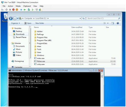 Hazırlamış olduğumuz zararlı psexec.exe dosyası çeşitli yöntemler ile hedef bilgisayara iletilir ve çalışması beklenir.