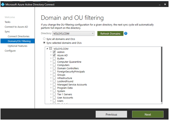 Active Directory’de sync edeceğim kullanıcıların bulunduğu OU’yu seçiyorum.