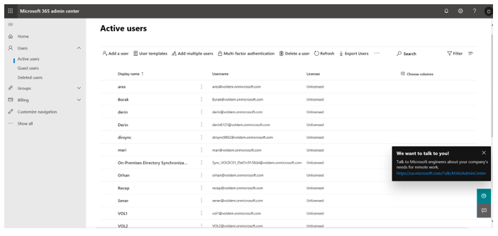 Office 365 ‘den de kullanıcılarımı görebiliyorum.