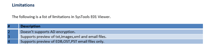 SysTools Uygulamasının Limitasyonları;