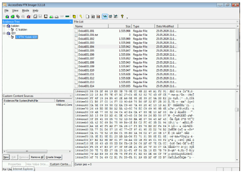 Hazırlanan E01 ve E0X dosyalarının FTK Imager deki görüntüsü aşağıdaki gibidir.