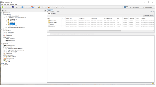Volsys.exe dosyasının içerisinde zararlı kod bulunmaktadır ve Autopsy uygulaması ile bu kodlar da görüntülenebilmektedir.
