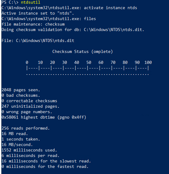 Active Directory database’inin veri bütünlüğünü kontrol etmek ve herhangi bir bozulma varsa tespit etmek için aşağıdaki adımlar uygulanır.