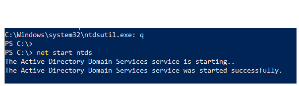 net start ntds ile de AD DS servisi çalışır hale getirilir.