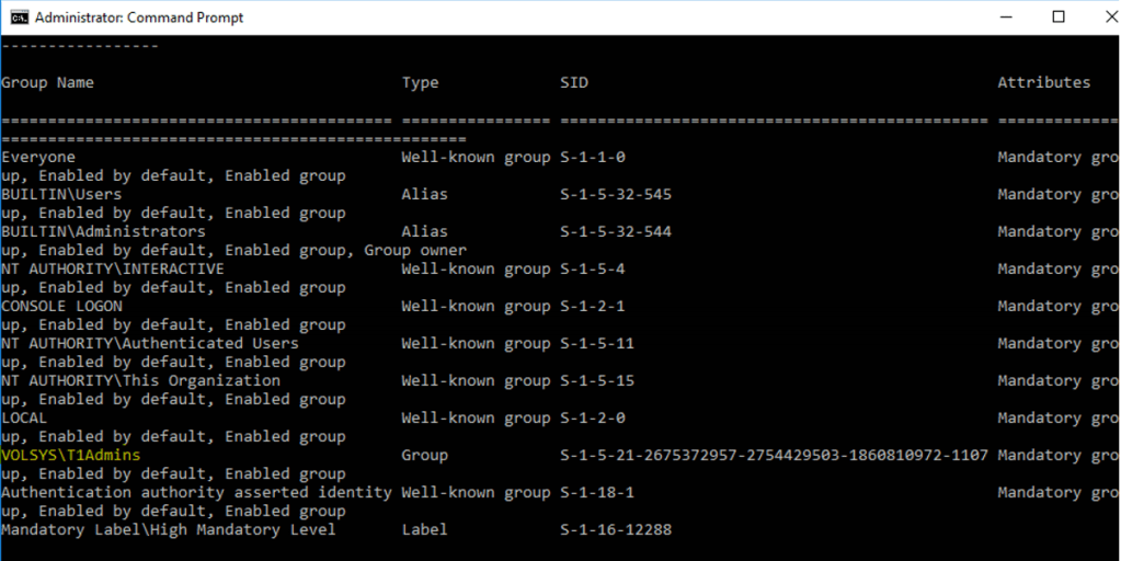 Whoami /all komutu ile de ARES’in member olduğu grupları görüntülüyorum.