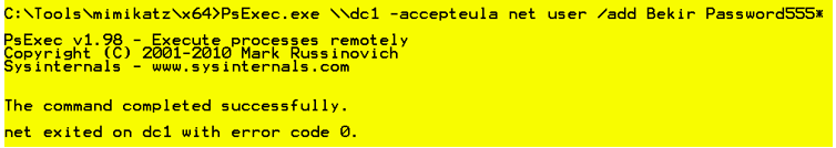 Domain’de ResetedAyse isimli bir user oluşturuldu. Şimdi Mimikatz’in oluşturduğu session’I iptal edicez ve tekrar testler yapacağız.