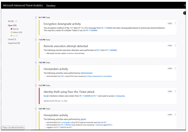 Microsoft Advanced Threat Analytics’de toplam 10 adet log oluşmuştur.