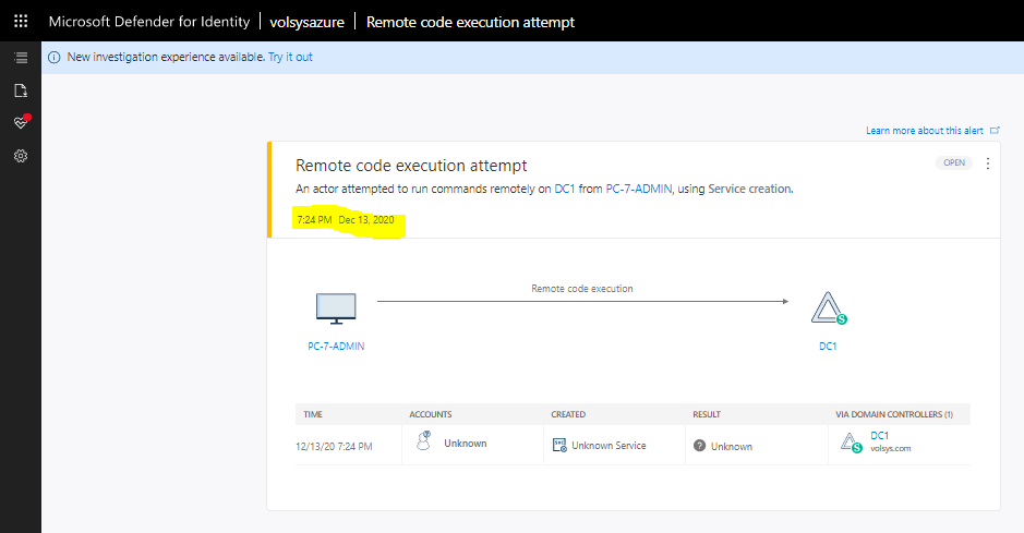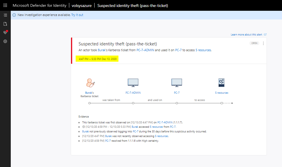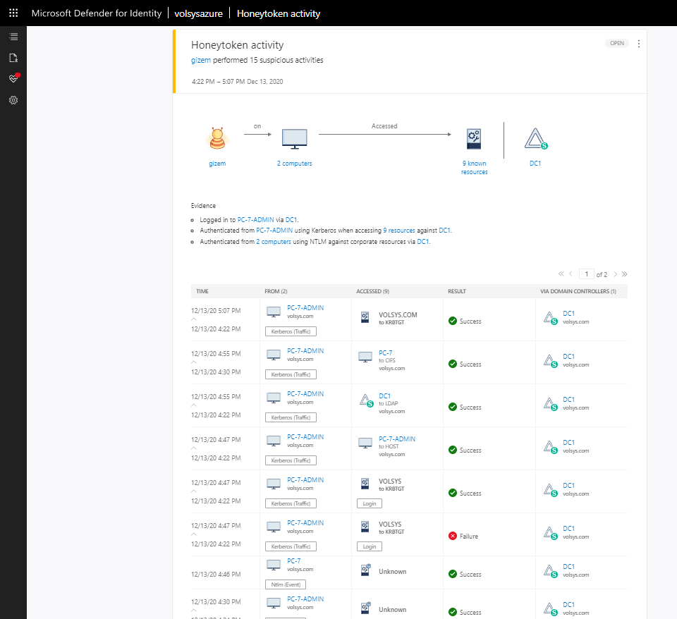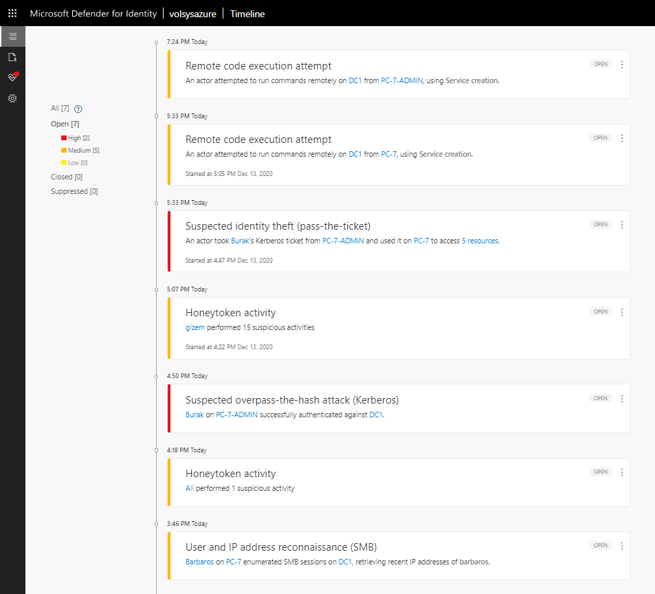 Microsoft Defender for Identity’de toplam 7 adet log oluşmuştur.