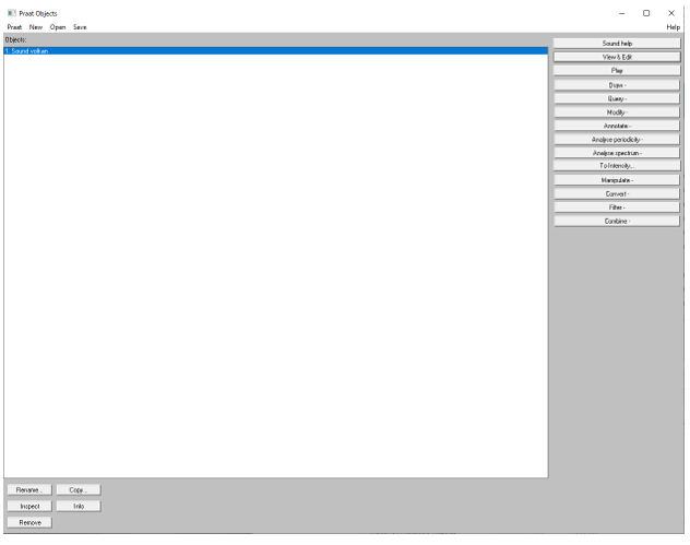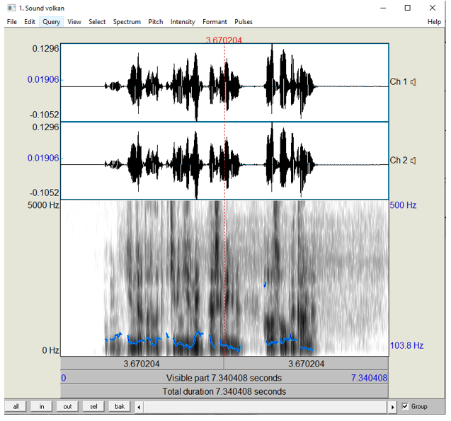 Praat Objects Menüsünde ilk kaydım “Sound Volkan” olarak geldi.