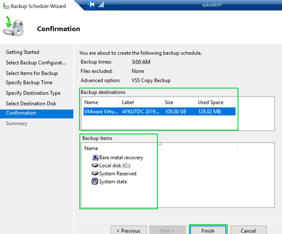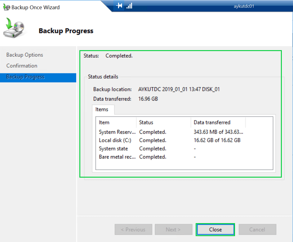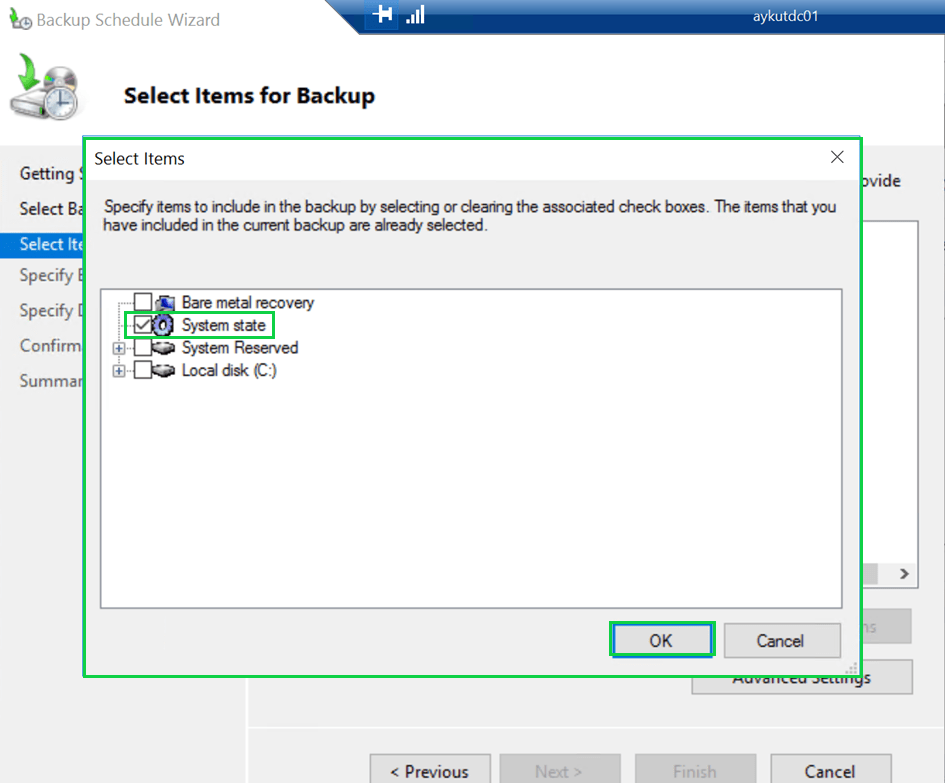 Ancak biz genelde AD’lerimizin backup’ını alırken, “Bare metal recovery” seçeneğini seçeriz, bu ise C sürücüsünün tamamı, işletim sisteminin çalışması için gerekli olan boot partion’lar ve tabiki system state’lerin yedeğinin alınması anlamına gelmektedir.