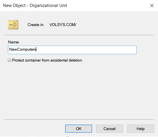 redircmp “OU=NewComputers,DC=Volsys,DC=COM”