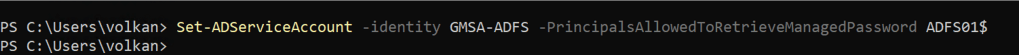 ADFS için gMSA oluşturma örneği aşağıdaki gibidir.