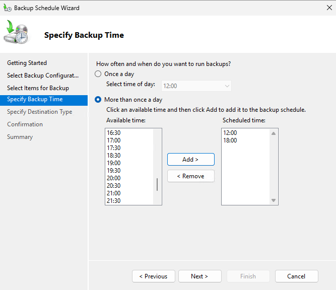 Backup’ların ne kadar süreyle alınacağını bu ekran üzerinden belirliyoruz. Önerilen günde 2 defa öğlen arası ve mesai saatinin hemen ardından.
