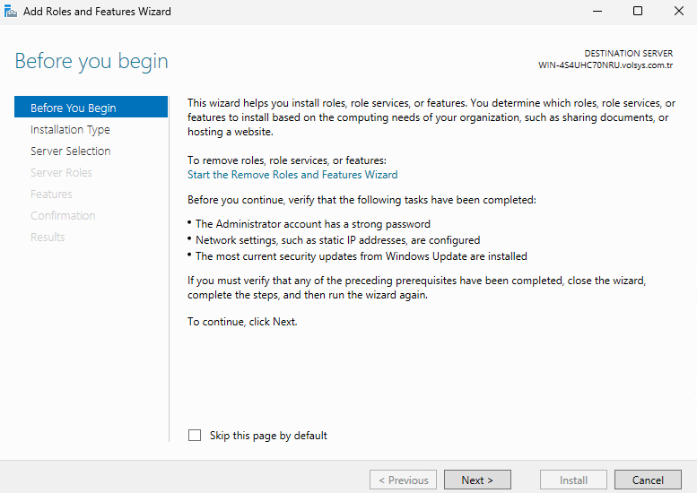 Server Roles alanında herhangi bir rol seçmeden devam ediyoruz.