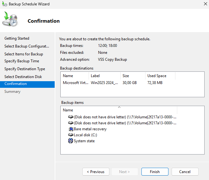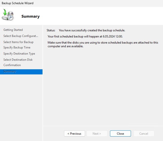 backup konfigürasyonumuzun tamamlandığını görüyoruz.