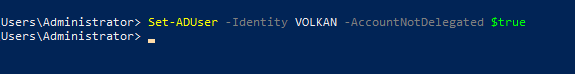 Set-ADUser -Identity “KullanıcıAdi” -AccountNotDelegated $true