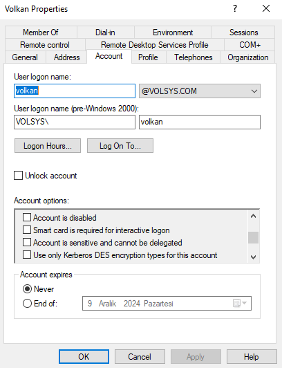 “Account is sensitive and cannot be delegated” ayarı, Active Directory’deki bir hesabın güvenliğini artırmak için kullanılan bir seçenektir. Bu ayar, bir hesabın yetki devri (delegation) işlemlerinde kullanılmasını engeller ve genellikle hassas veya yüksek ayrıcalıklı hesaplar için uygulanır.