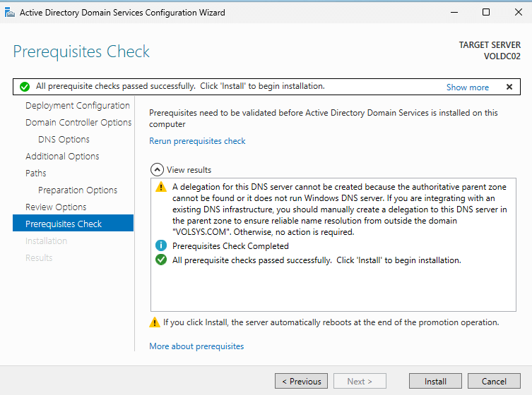 Gerekli kontroller yapılır ve Domain Controller restart edilir.