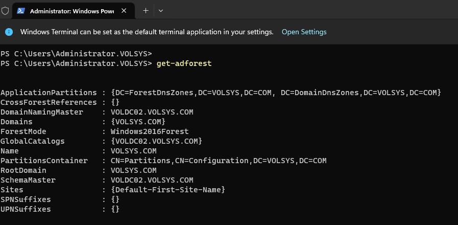 Not1: get-adforest komutu ile mevcut forest yapısı kontrol edilir.