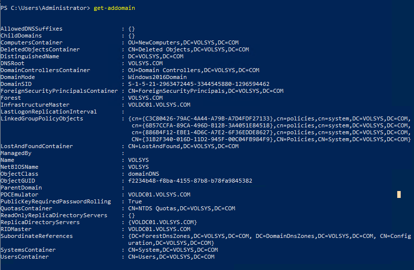 Not2: get-addomain komutu ile mevcut domain yapısı kontrol edilir