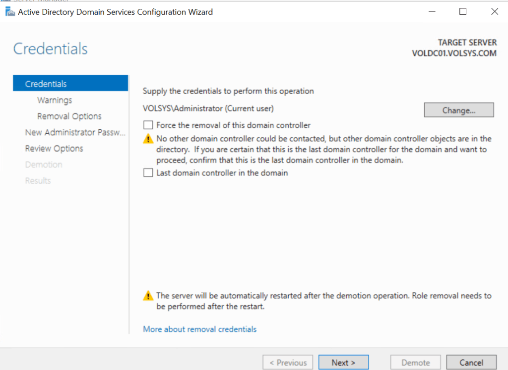 Demote işlemi tamamalandıktan sonra DC restart olur ve Member Server olarak kullanılabilir duruma gelir.