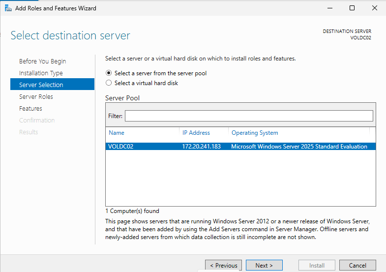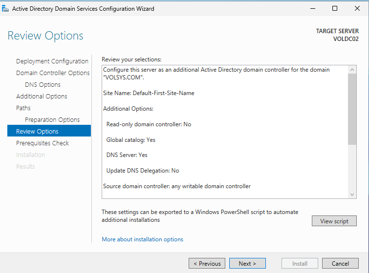 Domain Controller’ın ismi görülür ve next ile devam edilir