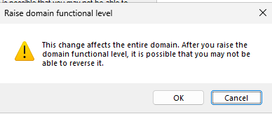 Önce Domain Functional Level’I upgrade etmek için ADUC’tan domain seçilir ve sağ tuş ile Raie domainfunctional level seçilir.